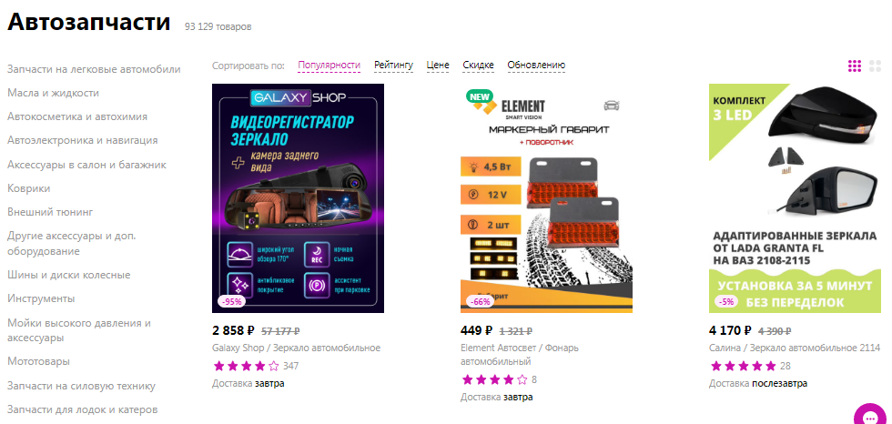 Подкатегорий очень много: продавец должен выбрать приоритетные товарные группы путем тестирования и анализа успешного опыта конкурентов.